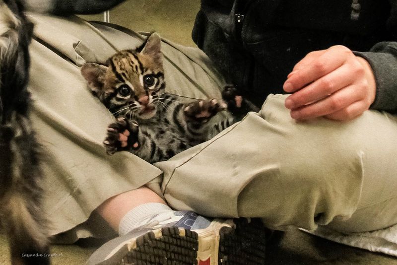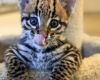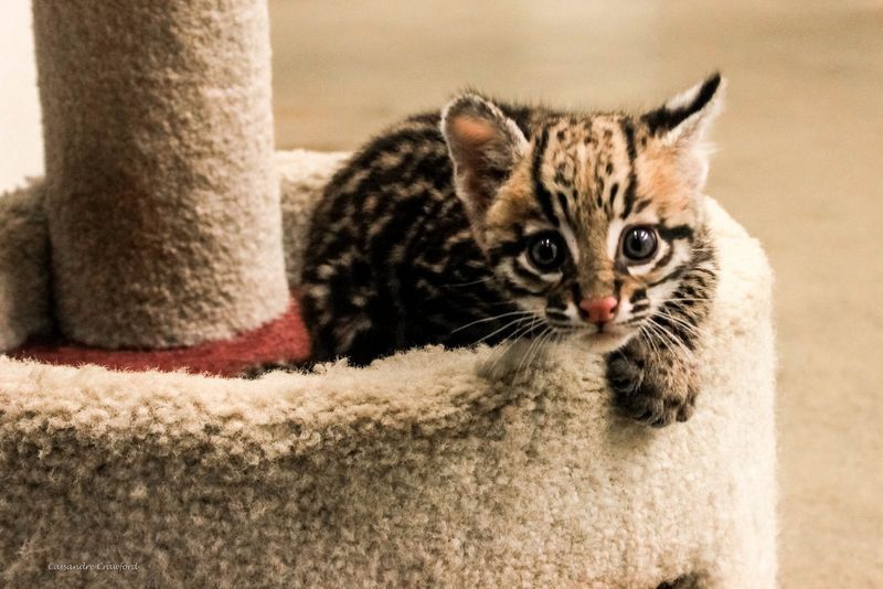 Tako kot mladički domačih mačk, tudi mali ocelot obožuje ropotajoče igračke in plezala: