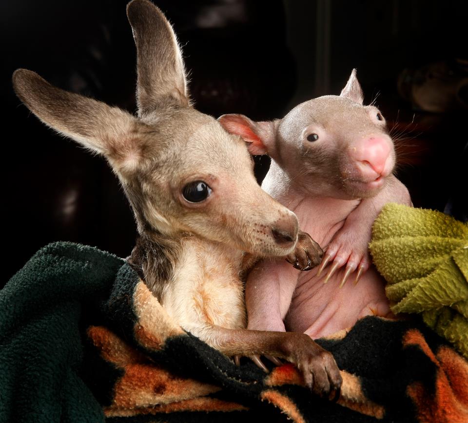 Pravijo, da se nasprotja privlačijo – mogoče sta ravno zato kenguru Anzac in vombatka Peggy postala najboljša prijatelja.