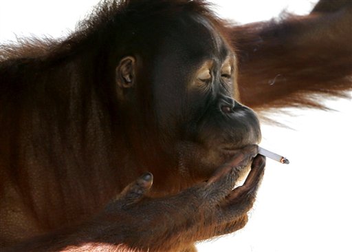 Petnajstletna Tori je začela kaditi pred devetimi leti, ko so obiskovalci indonezijskega živalskega vrta Taru Jurug pričeli v njeno ogrado metati cigaretne ogorke. Radovedna orangutanka je posnemala človeško vedenje in kmalu postala odvisna od cigaretnega dima.