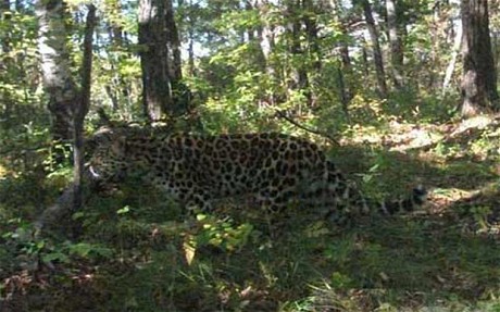 Ogroženega amurskega leoparda, znanega tudi kot mandžurski leopard, so na Kitajskem v gozdu, ki meji med Rusijo in Severno Korejo, fotografirali po naključju.