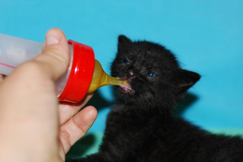 ure po tem, ko so jo potegnili iz luknje, je že zadovoljno predla in sesala kozje mleko po steklenički. In taka je od najdbe naprej.
