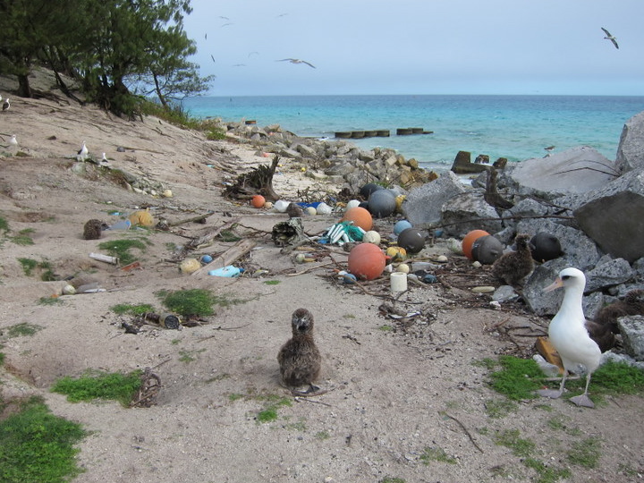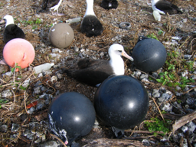 Na udaru je tudi atol Midway v Tihem oceanu, kjer prebiva veliko zaščitenih živalskih vrst. V vodah okoli atola plavajo velike količine plastike, ki konča v prebavilih tamkajšnjih ptic. Odrasli albatrosi plastiko zamenjajo za hrano in z njo hranijo svoje mladiče. Ti letno pojejo 5 ton plastike, tretjina pa jih zaradi tega umre.