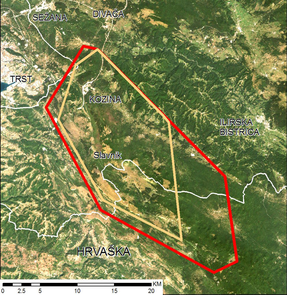Slavc se je skupaj s svojim rodnim tropom navadno gibal od meje z Italijo, preko Kozine, Slavnika, in Kraškega roba do Čičarije na Hrvaškem; svoj teritorij pa si bo očitno poskušal poiskati precej bolj severno.