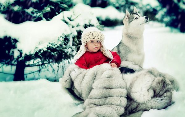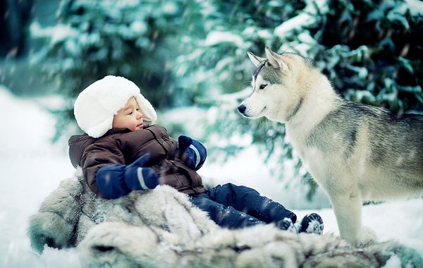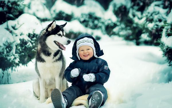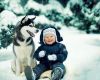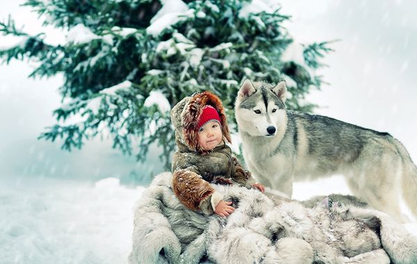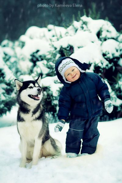 Fotografinja Elena Karneeva je sicer specializirana za slikanje otrok, tokrat pa se je njenim malim modelom na snegu pridružilo še nekaj pasjih smrčkov, ki so poskrbeli za res nepozabne fotografije!