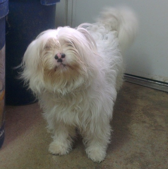 Leto dni stara mešanka z maltežanom je zelo prijazna in igriva.